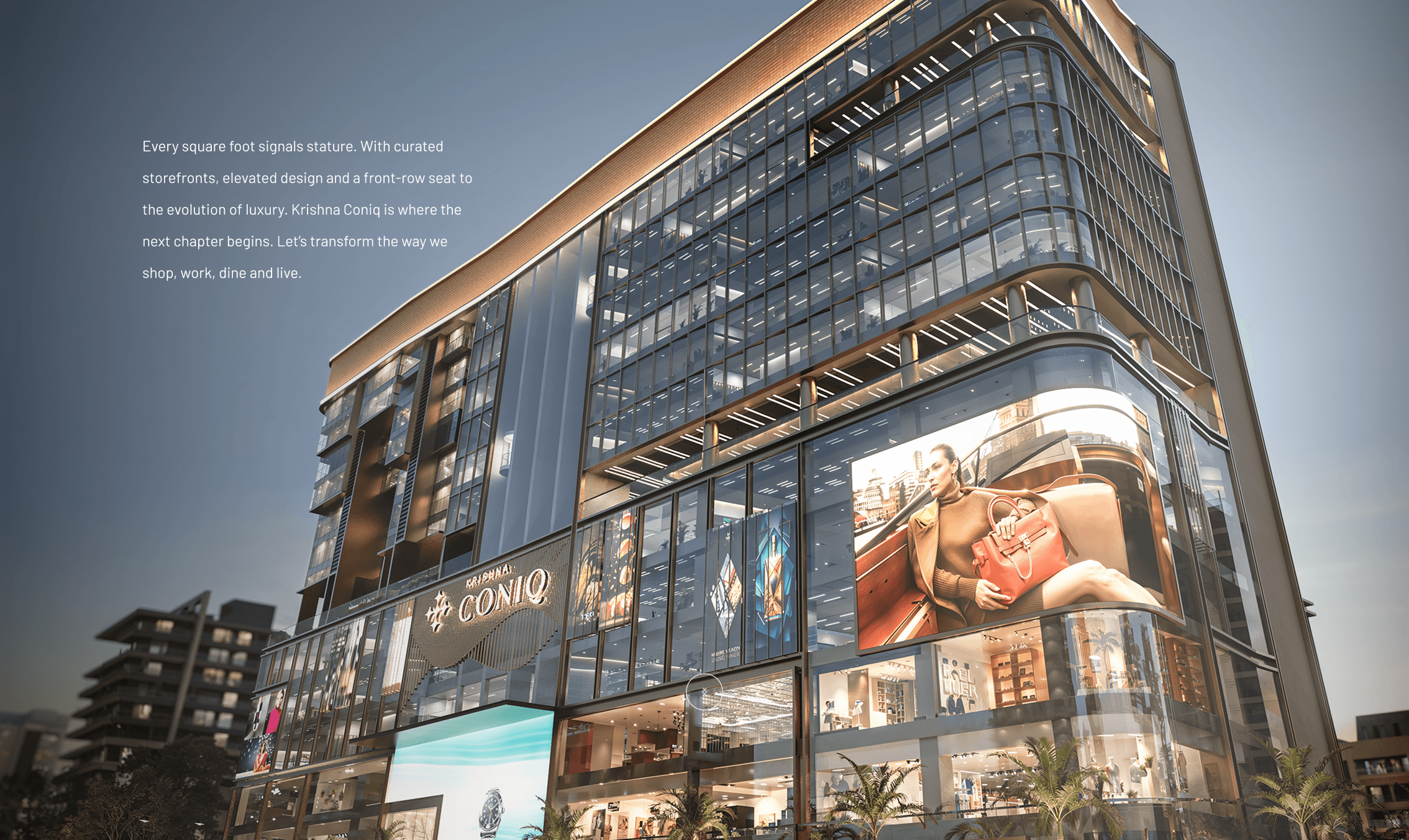 Every square foot signals stature. With curated storefronts, elevated design and a front-row seat to the evolution of luxury. Krishna Coniq is where the next chapter begins. Let’s transform the way we shop, work, dine and live.
